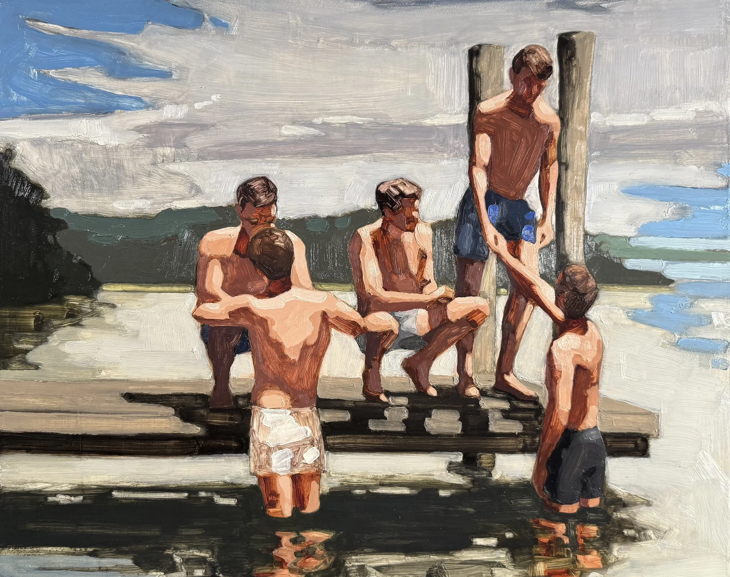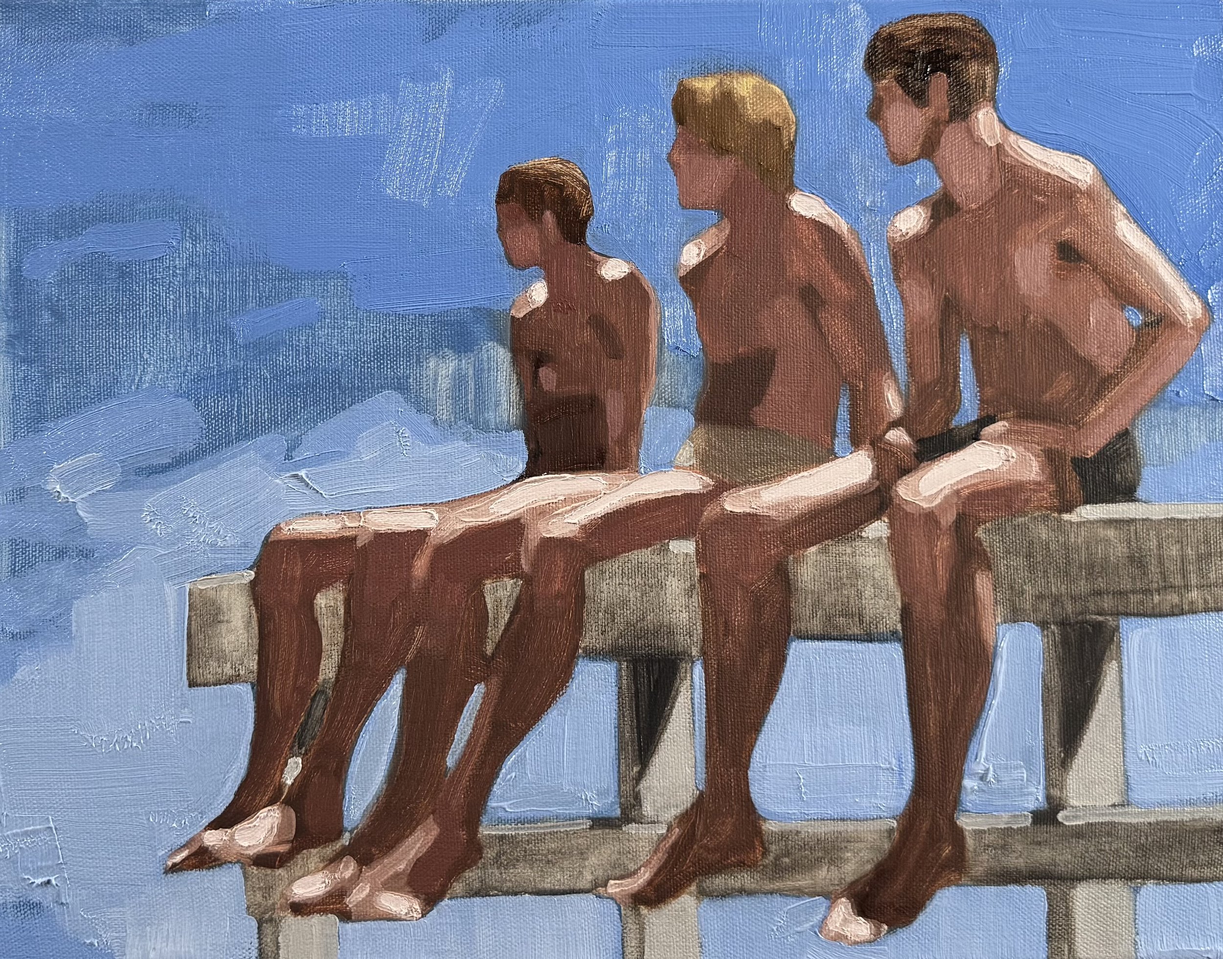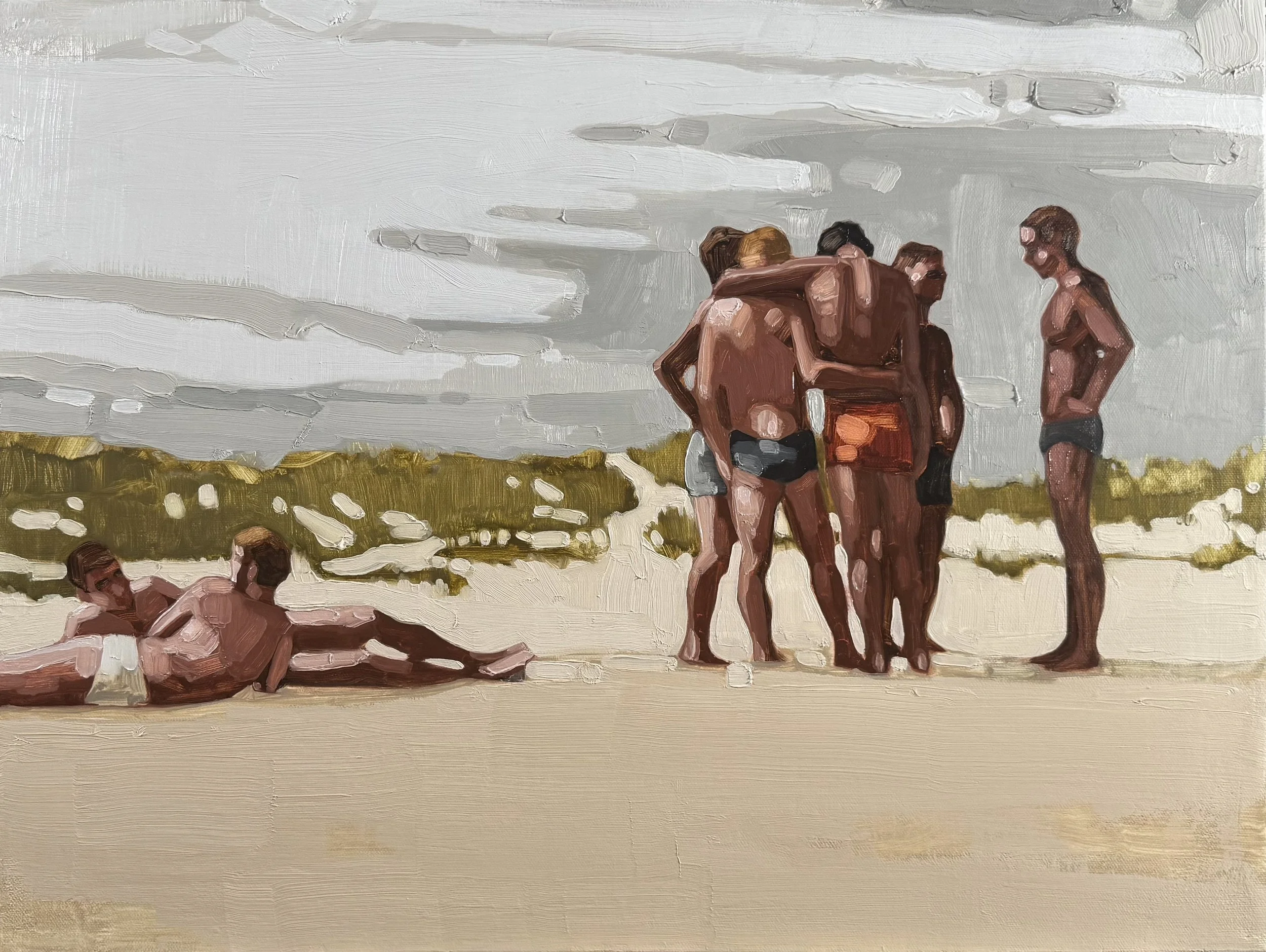 The interaction of people, effects of light, and colors created are my guiding elements when creating a painting. My works all aim to capture a moment and express the intimacy of human interaction within nature, like someone in the background of a photograph unaware of their gestures being captured. The effect that light has on a subject and its surroundings also inspires my pieces; what it can create as it subtly touches a face or harshly casts a shadow. This and the colors within nature inform my work and what I seek to capture on a canvas.
